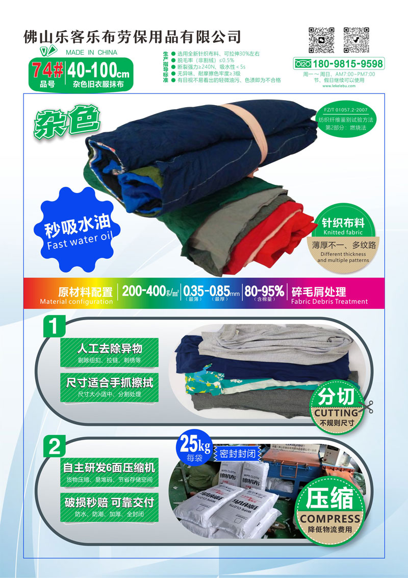 乐客乐布-L-74#产品工业清洁布、杂色抹布、工业擦机布 旧衣服吸水油饱和量高 流通广泛产品