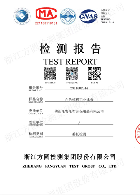 乐客公司提供擦机布产品检测报告,第三方检测机构数据,检测报告出具时间大约10天左右